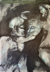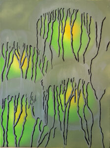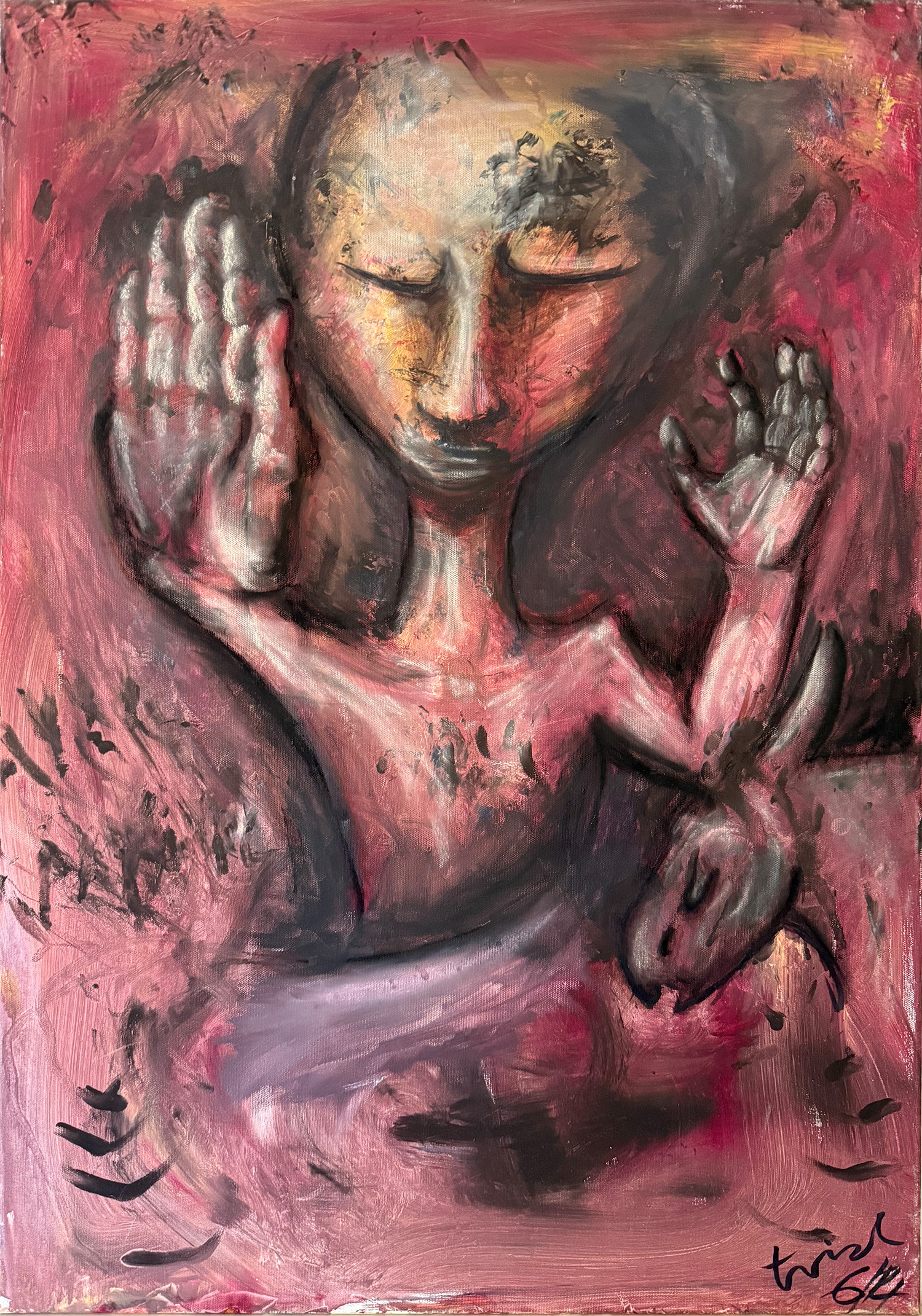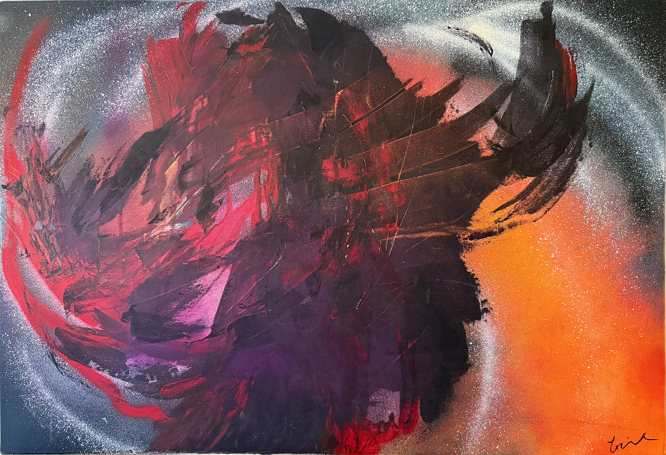 Acrylfarben lassen sich gut mit Acrylspühfarben mischen. Ebenfalls Pastellkreise kann man nach dem Trocknen gut einarbeiten.